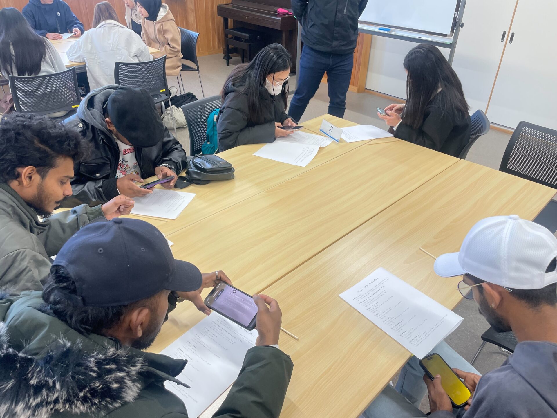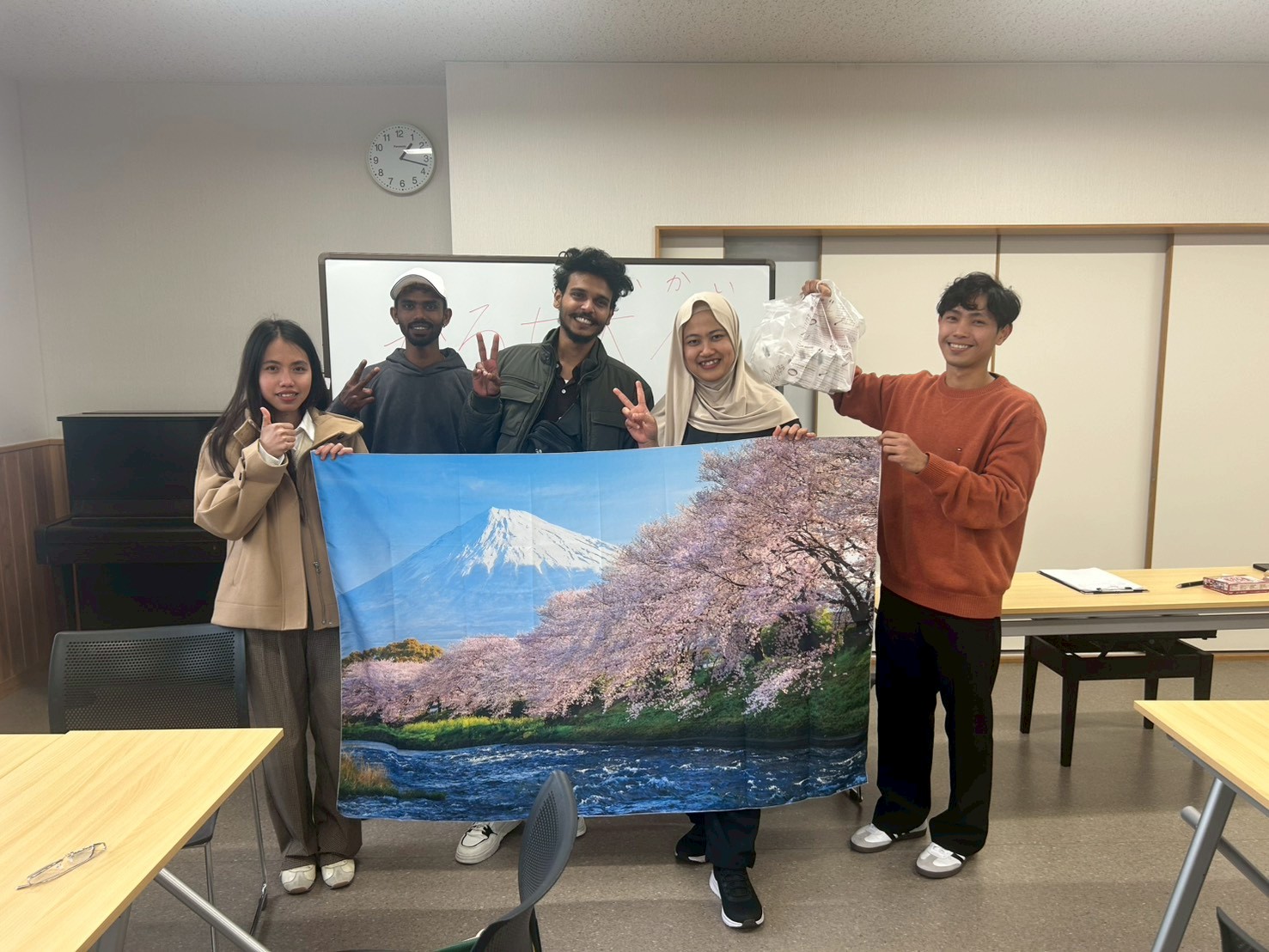 最後に母国ではどのような防災対策を行っているのかについて話し合いを行いました。 話し合いの中で、「ミャンマーでは緊急時用のバッグは準備されているが、実際に使用した経験はない」「インドネシアやスリランカでは、災害時の対応についてあまり知識がなかった」といった意見が上がり、国ごとの防災意識の違いや日本での防災について考える良い機会となりました。